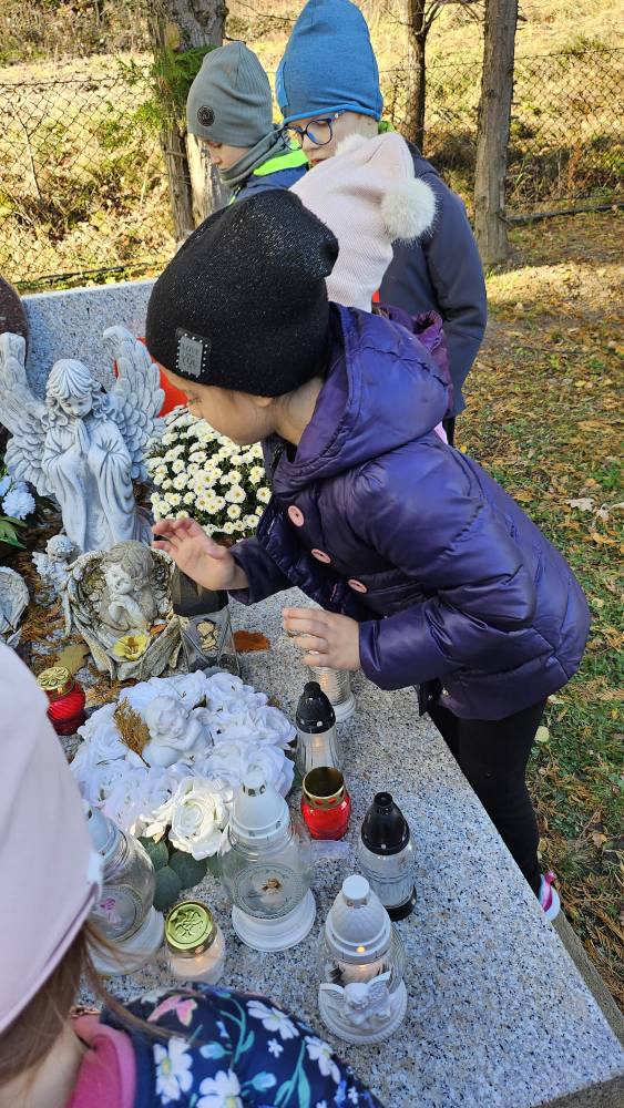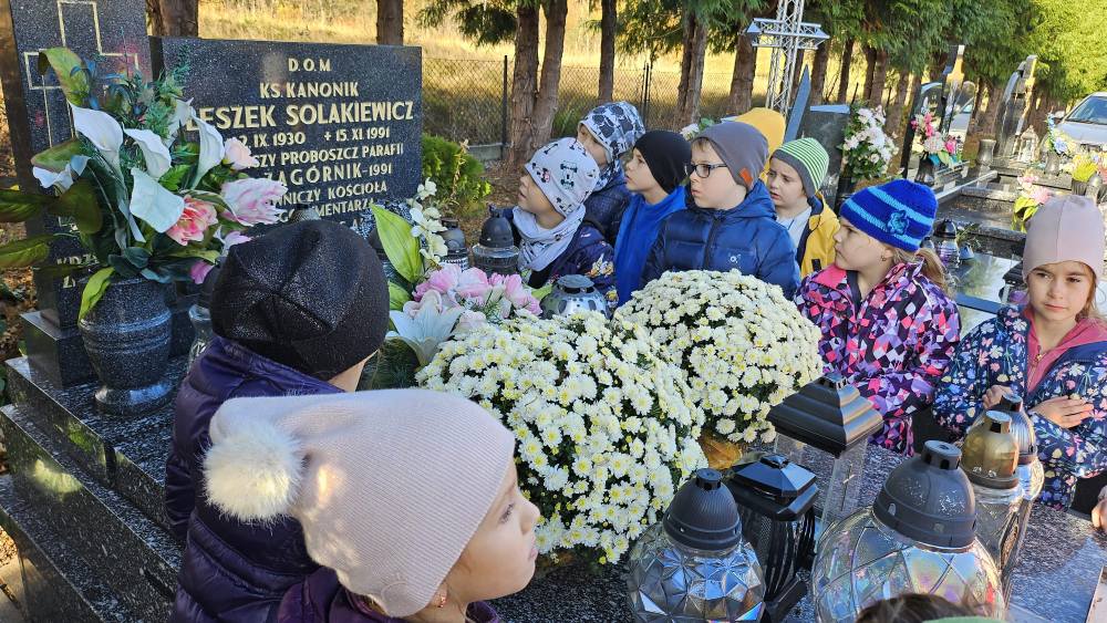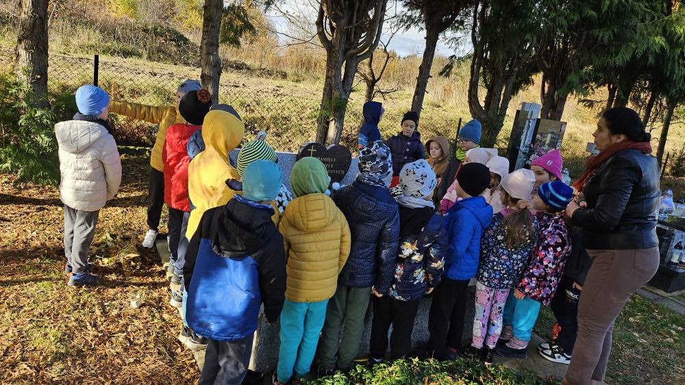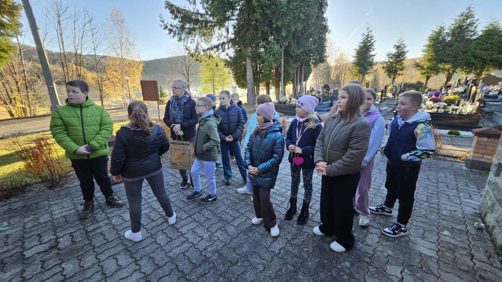 Pamiętamy o zmarłych. przez Ewa Kurzeja · 2025-11-19 Uczniowie odwiedzili miejsca pamięci na zagórnickim cmentarzu.