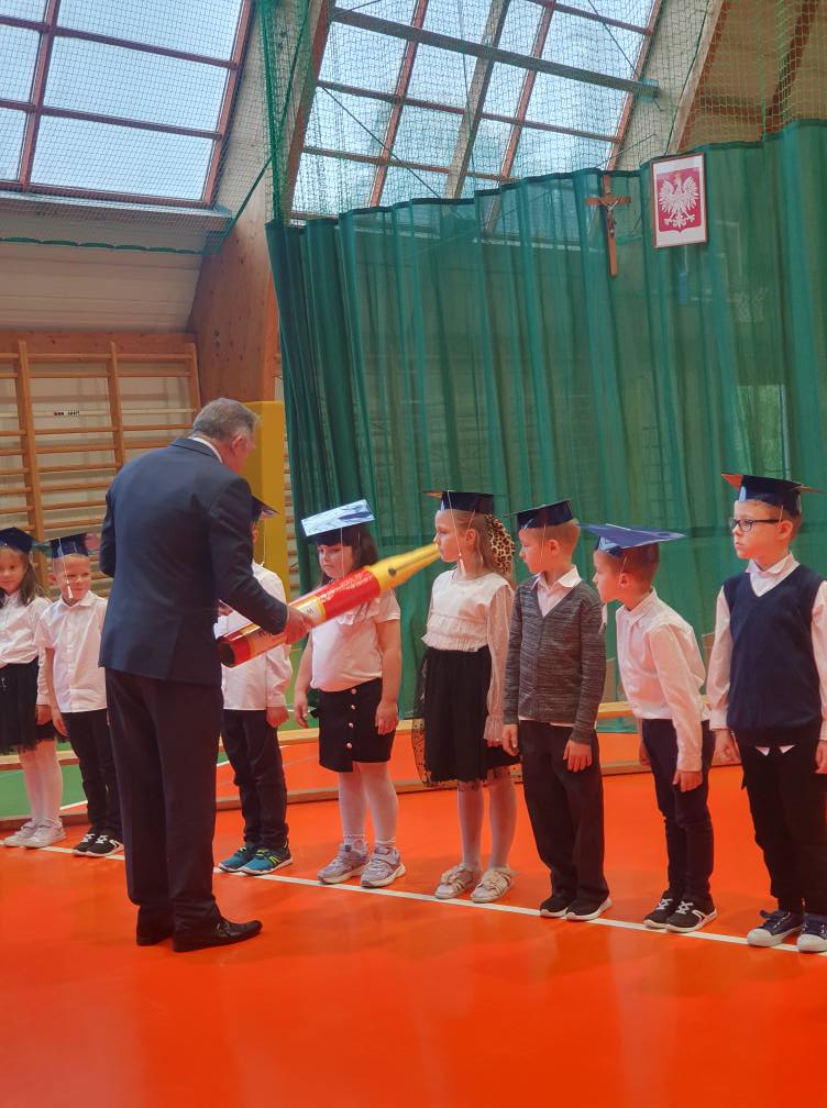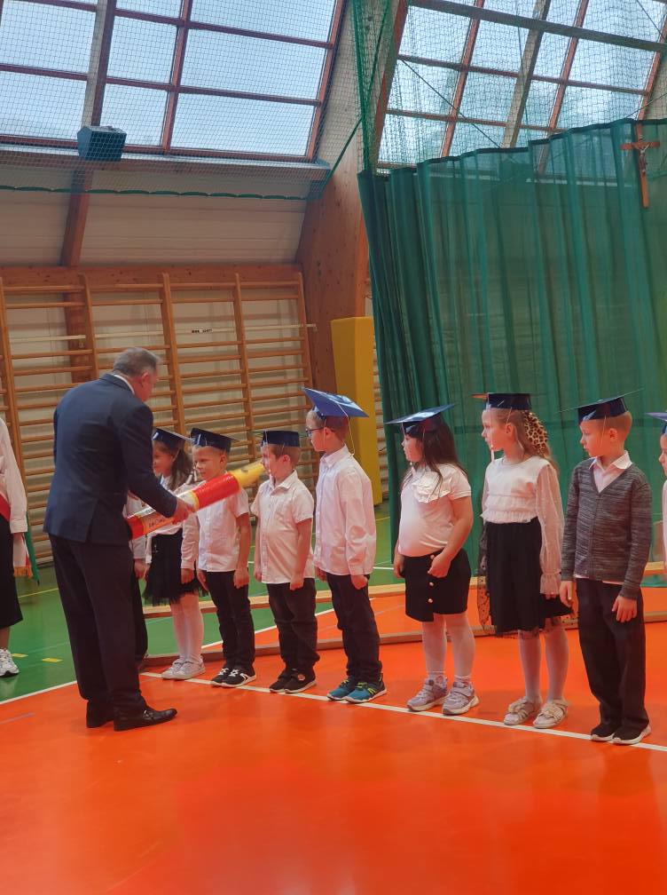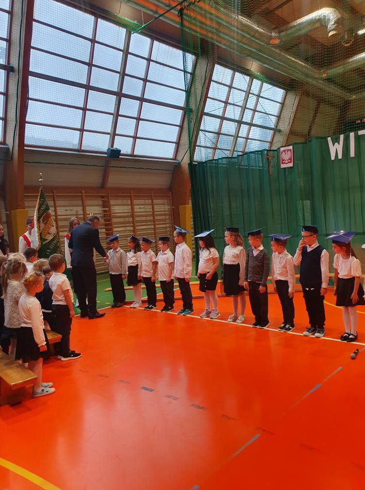 10 października w naszej szkole odbyła się jedna z najpiękniejszych uroczystości w życiu każdego ucznia- Ślubowanie Pierwszoklasistów. Z dumą patrzyliśmy, jak nasi najmłodsi uczniowie zdawali swój pierwszy ,,egzamin” z bycia prawdziwym uczniem, recytując wiersze z ogromnym zaangażowaniem i dziecięcą szczerością. Między wierszami rozbrzmiewały wesołe piosenki, a uśmiechy naszych nowych uczniów mówiły więcej niż tysiąc słów. Po złożeniu uroczystego ślubowania Pan Dyrektor symbolicznym piórem pasował każdego pierwszaka na ucznia naszej szkoły. Był to moment pełen emocji, wzruszeń i dumy- zarówno dla dzieci, rodziców, jak i nauczycieli.