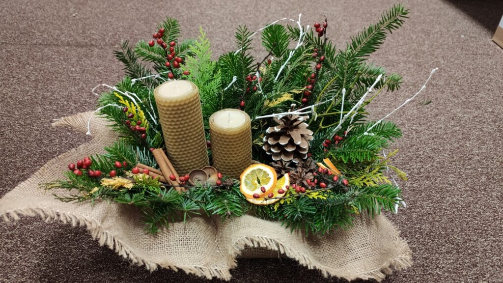 Uczestnicy konkursu wykonają ozdobę choinkową – wielkość i waga muszą umożliwiać zawieszenie jej na choince, praca musi być przestrzenna tj. wykończona z każdej strony. Stroik świąteczny – wykonany z dowolnych, różnorakich materiałów, trwałych, pozwalających ustawienie go na wigilijnym stole.