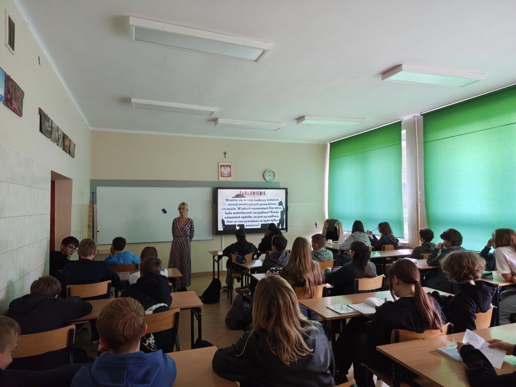 21 października uczniowie klas 7a i 7b uczestniczyli w warsztatach profilaktycznych ,,Szkolna Gwiazda”. Warsztaty inspirowane były historią z sali sądowej Sędzi Anny Marii Wesołowskiej dotyczyły cyberprzemocy oraz hejtu w internecie.