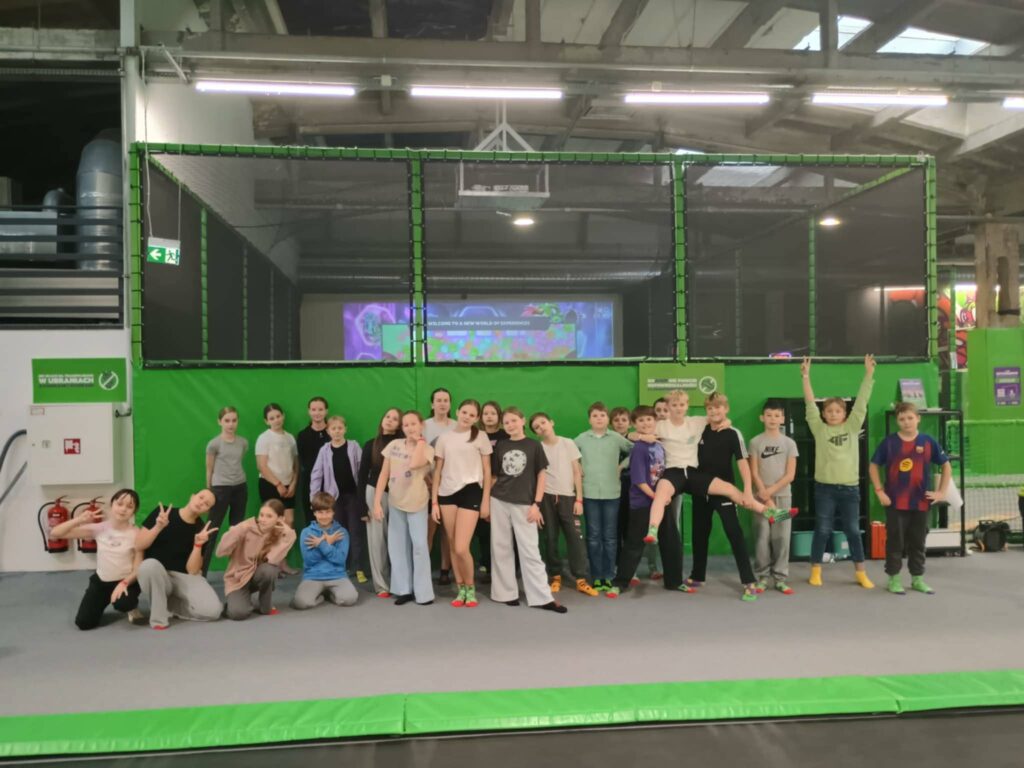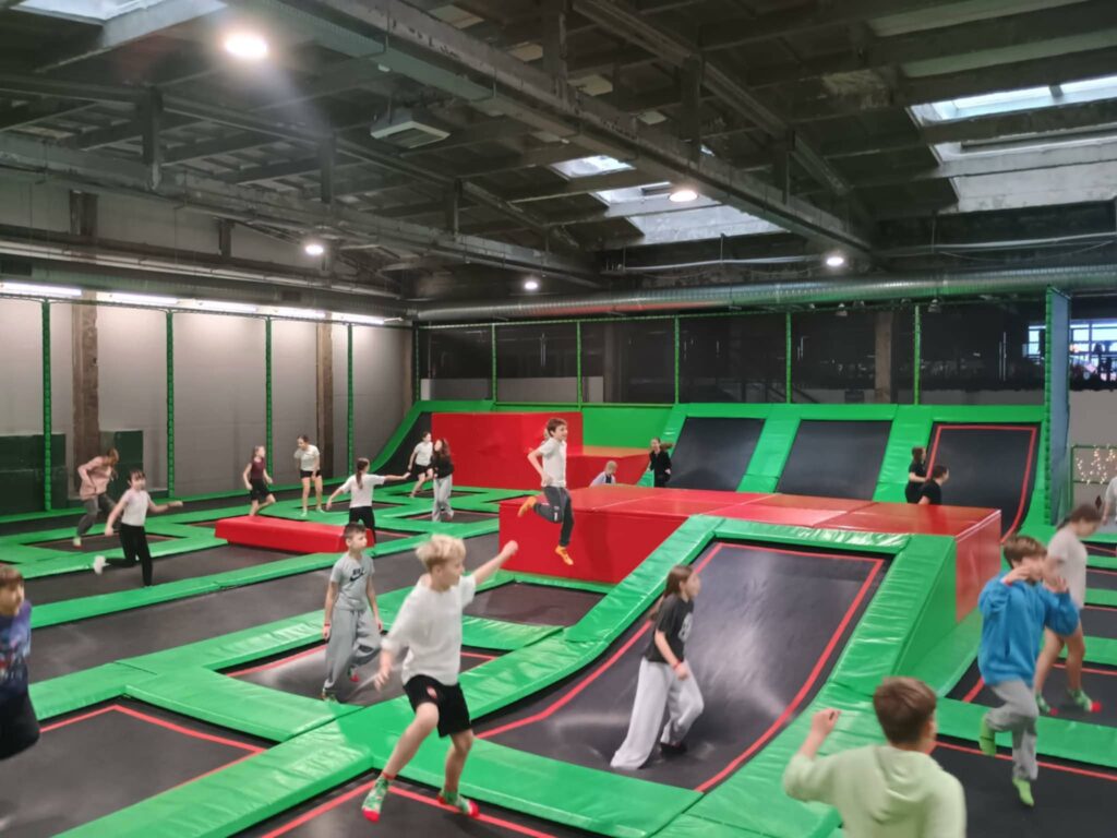 Po filmie przyszedł czas na porcję ruchu i dobrej zabawy – klasy udały się do parku trampolin GoJump, gdzie rozpoczęło się prawdziwe szaleństwo! Skoki, salta, wspólna zabawa i mnóstwo śmiechu – dzieci dały upust swojej energii i radości. Zabawa trwała w najlepsze aż do ostatnich minut wycieczki.