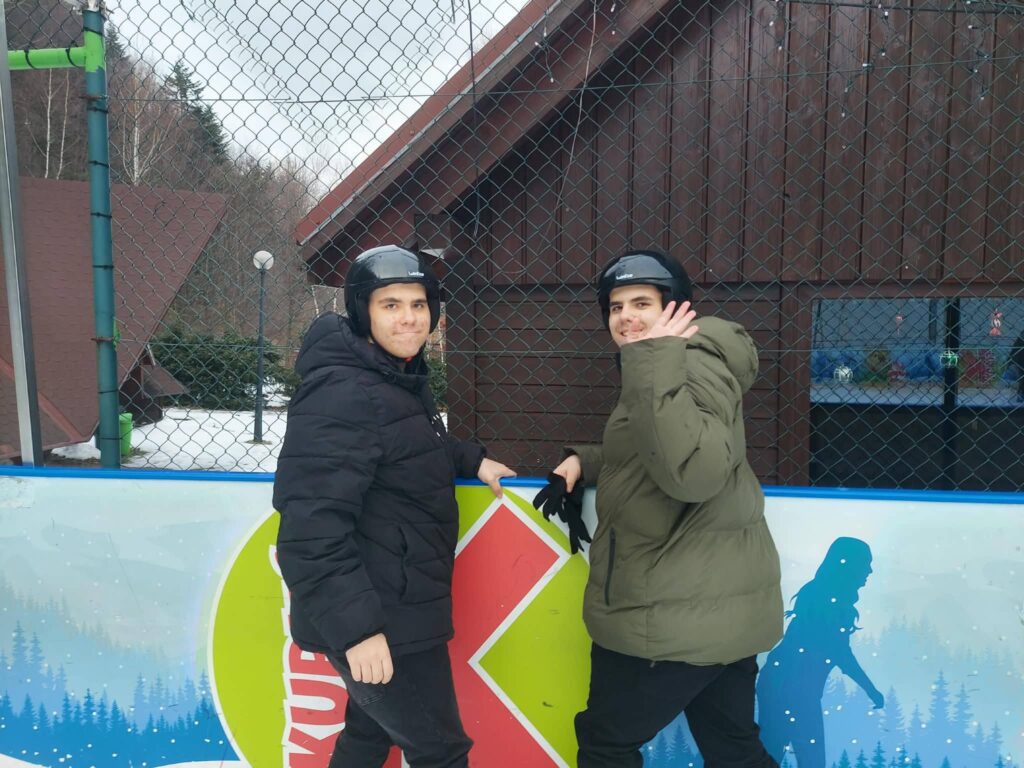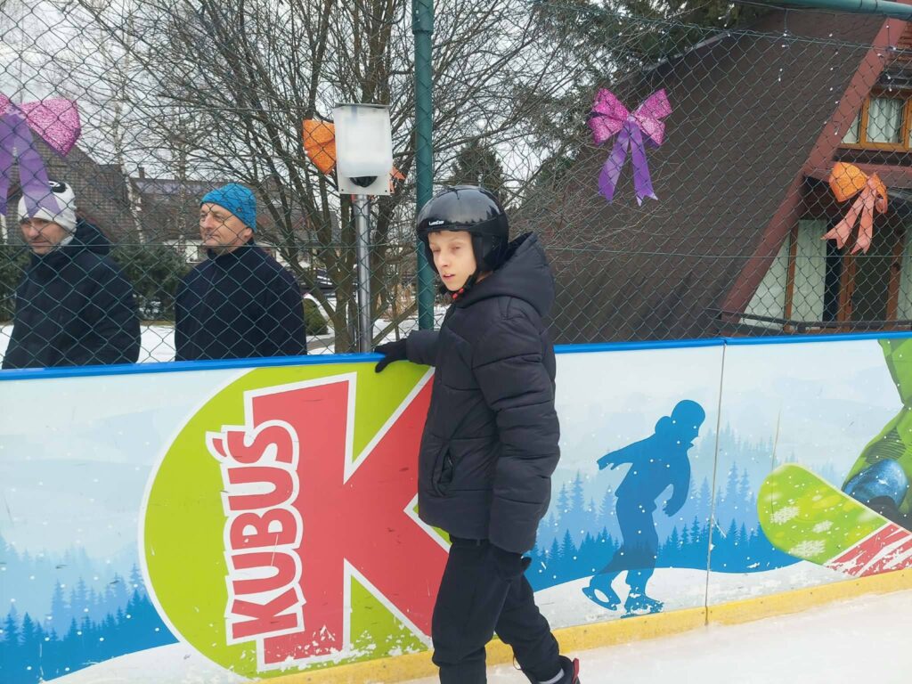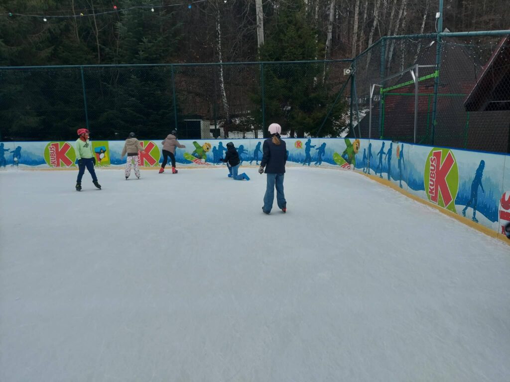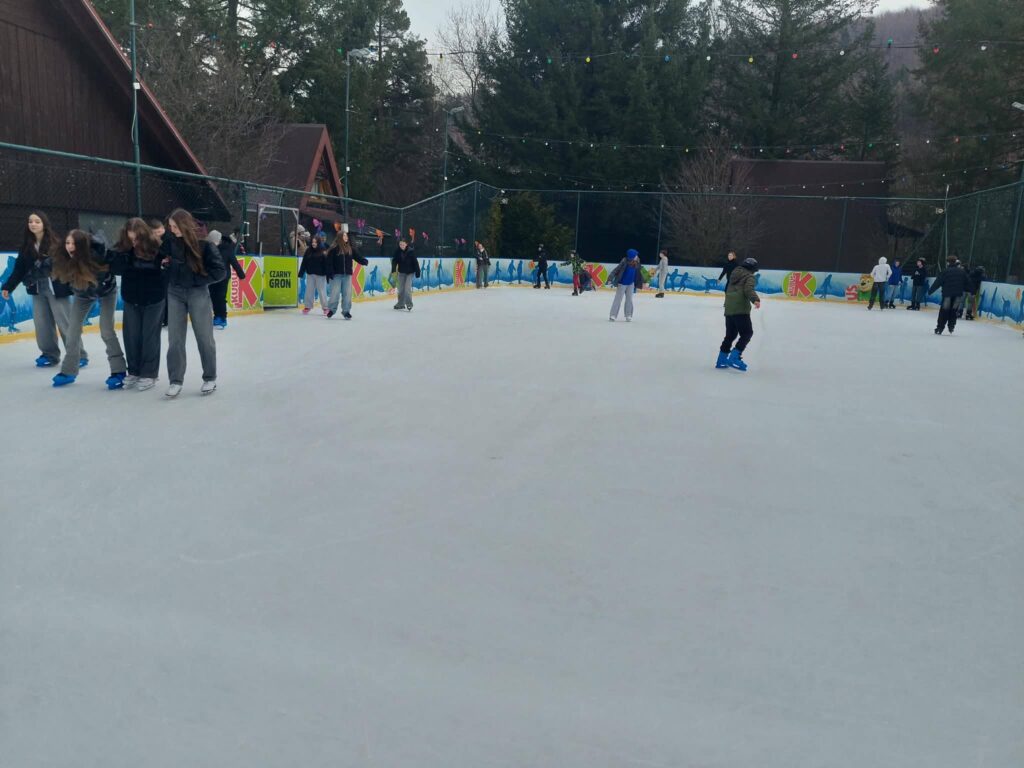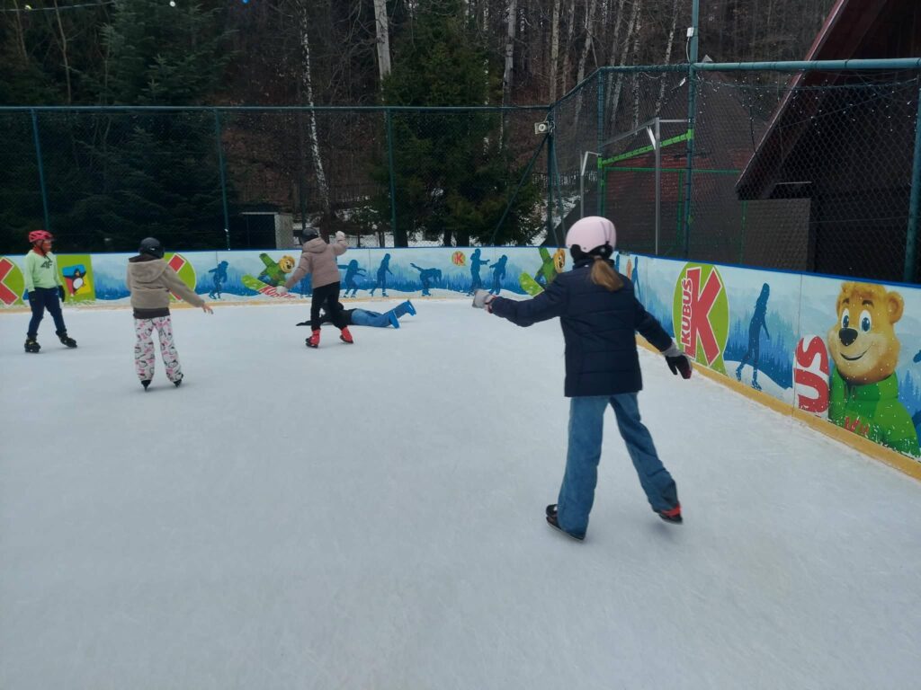 Uczniowie z ogromnym entuzjazmem wskoczyli na taflę i szybko złapali rytm jazdy. Było trochę śmiechu, kilka niegroźnych upadków i mnóstwo dobrej zabawy. Pogoda dopisała, a cała grupa świetnie spędziła czas, integrując się i aktywnie spędzając piątkowy dzień.